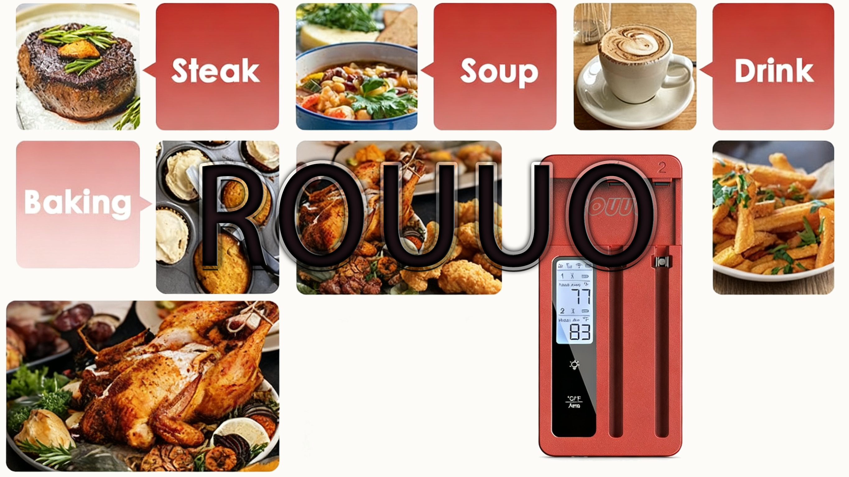 ROUUO Termómetro de carne de lectura instantánea para cocinar